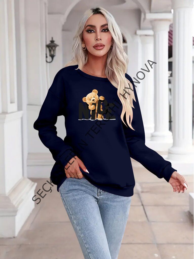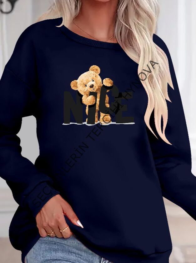 Kadın Uzun Kollu Bisiklet Yaka Viskon Iki Iplik Bluz
