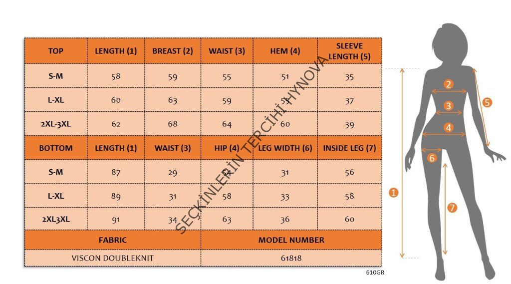 Modelin Ölçüleri: Boy:165, Kg:55, Göğüs:90, Bel:72, Kalça: 100