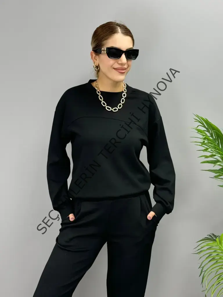 Kadın Uzun Kollu Bisiklet Yaka Viskon Iki Iplik Bluz Ve Pantolon Ikili Takım