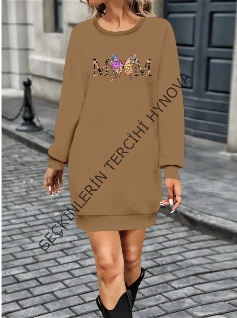 Kadın Uzun Kollu Bisiklet Yaka Viskon Iki Iplik Elbise