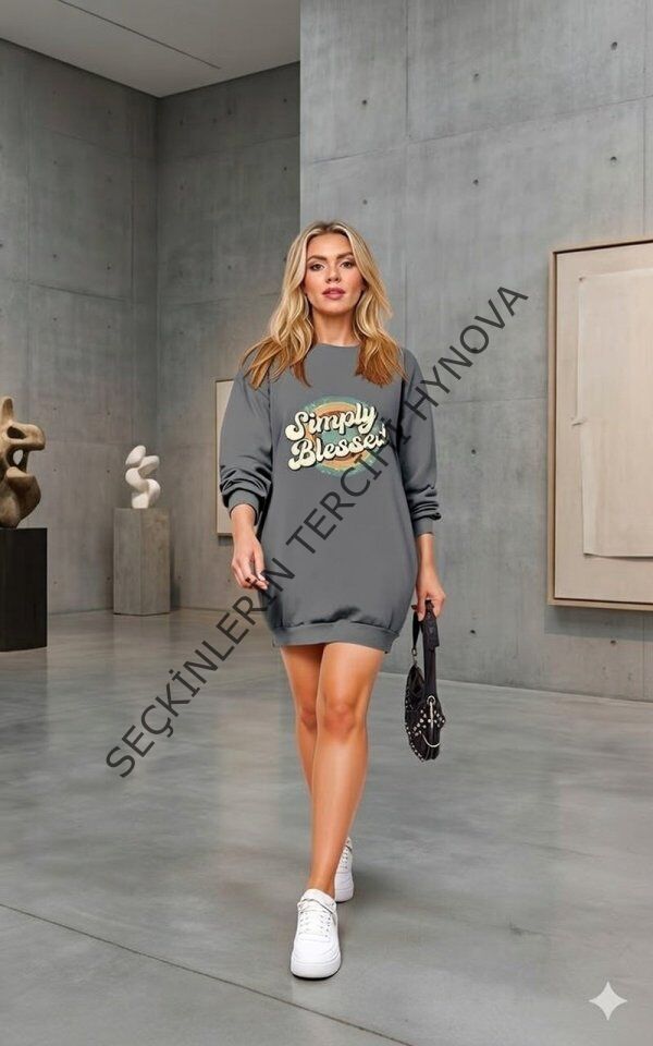 Kadın Uzun Kollu Bisiklet Yaka Yazılı Viskon Iki Iplik Elbise