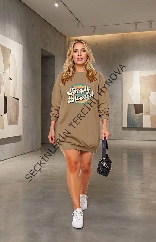 Kadın Uzun Kollu Bisiklet Yaka Yazılı Viskon Iki Iplik Elbise