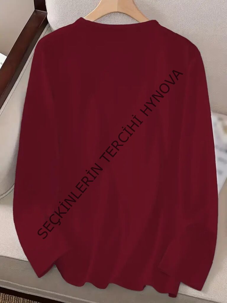 Kadın Uzun Kollu Bisiklet Yakabe Youdesenli Viskon Bluz