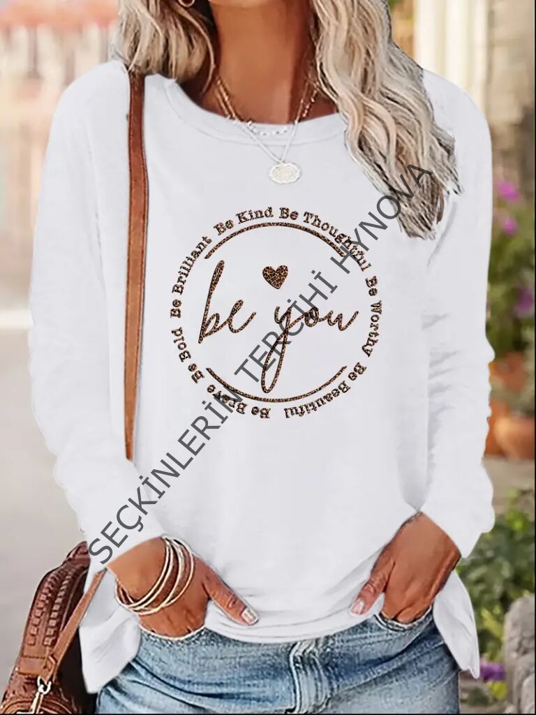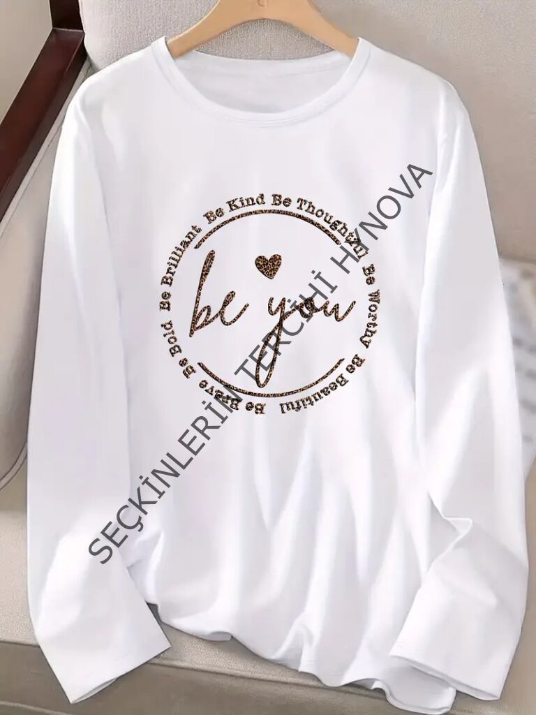 Kadın Uzun Kollu Bisiklet Yakabe Youdesenli Viskon Bluz