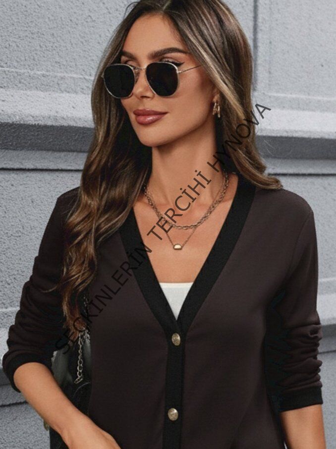 Kadın Uzun Kollu Cepli önden Düğmeli Uzun Modal Ceket Hırka