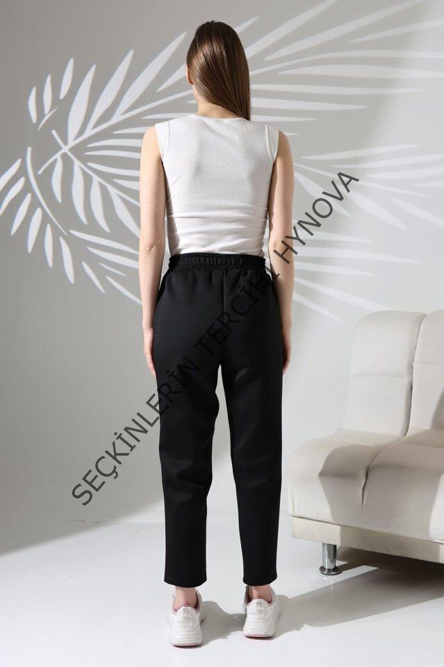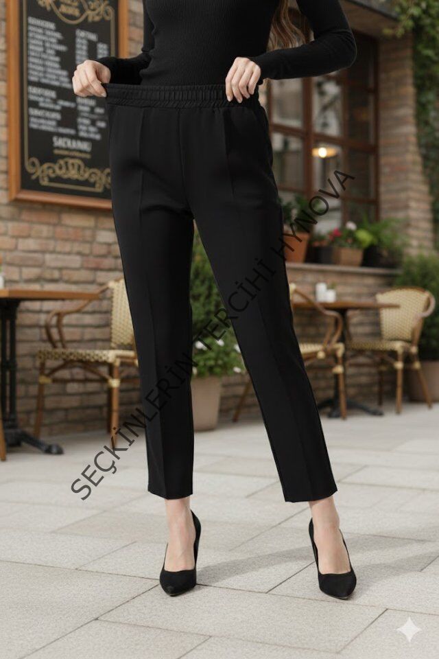 Kadın Uzun Kollu Dalıç Kumaş Cep Detay Beli Lastikli ütüsüz Pantolon