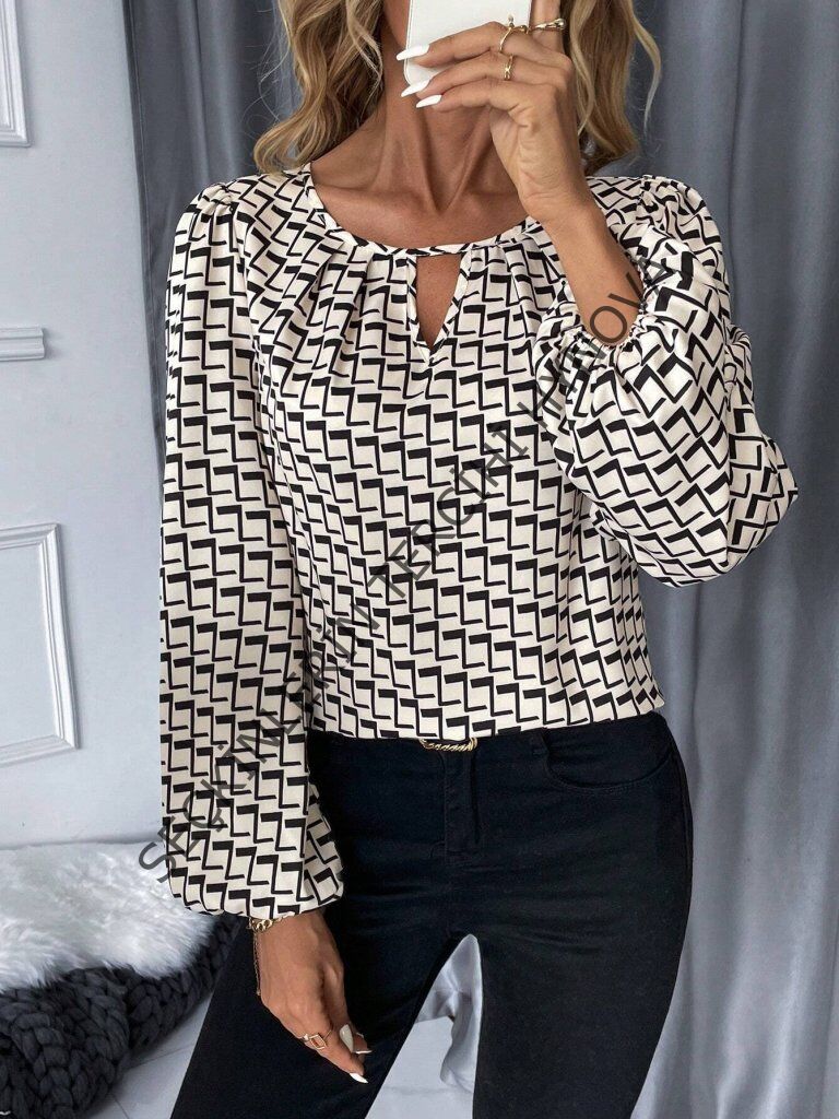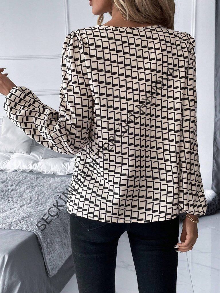 Kadın Uzun Kollu Damla Detaylı Yaka Desenli Süprem Bluz