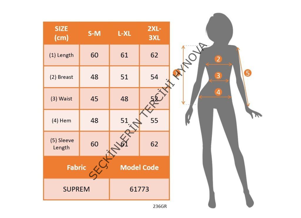 Modelin Ölçüleri: Boy:165, Kg:55, Göğüs:90, Bel:72, Kalça: 100