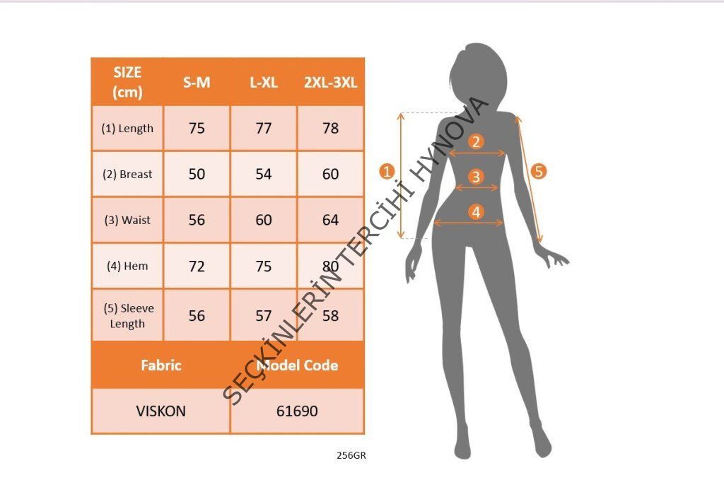 Modelin Ölçüleri: Boy:165, Kg:55, Göğüs:90, Bel:72, Kalça: 100