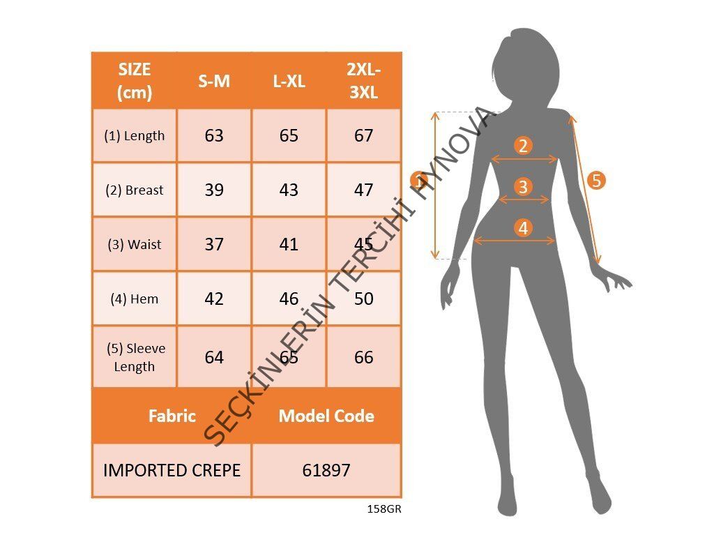 Modelin Ölçüleri: Boy:165, Kg:55, Göğüs:90, Bel:72, Kalça: 100