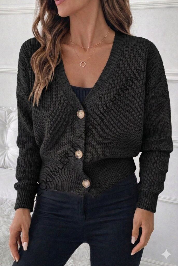 Kadın Uzun Kollu Düğme Detay Triko Hırka