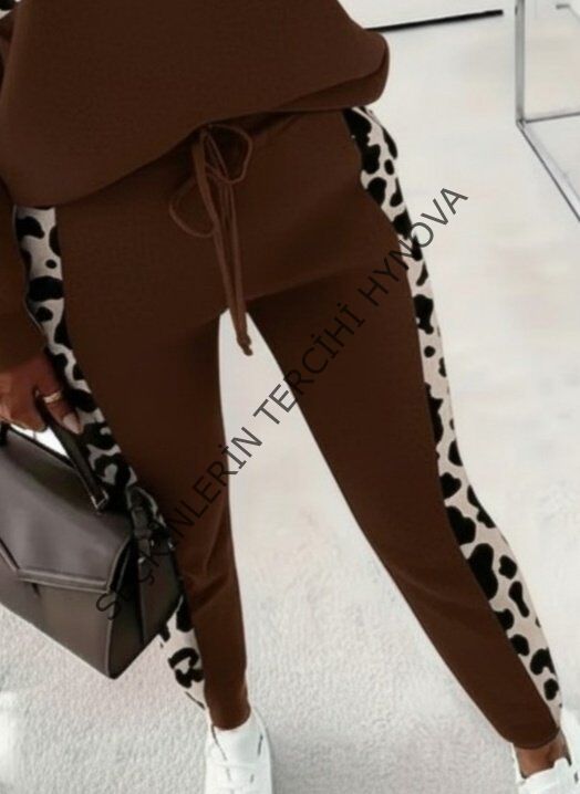 Kadın Uzun Kollu Fermuarlı Karışık Desenli Viskon Iki Iplik Bluz Ve Pantolon Ikili Takım