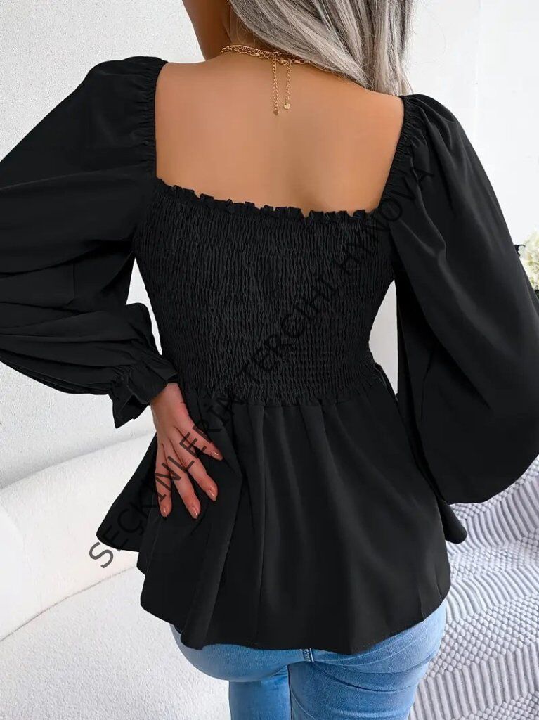Kadın Uzun Kollu Geometrik Yakalı Gipe Detaylı Krep Bluz 177538