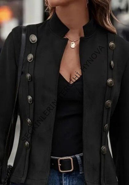 Kadın Uzun Kollu Hakim Yaka Yanlardan Düğmeli Kısa Süet Ceket