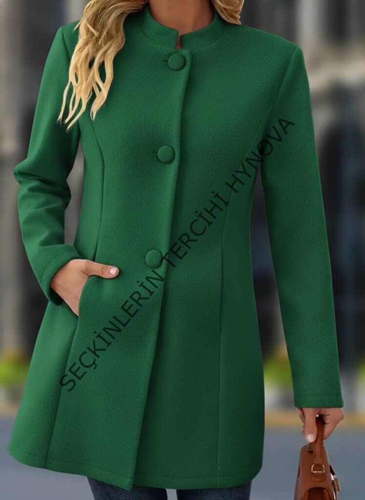 Kadın Uzun Kollu Hakim Yakalı önden Düğmeli Cep Detaylı Kısa Taba Kaşe Kaban
