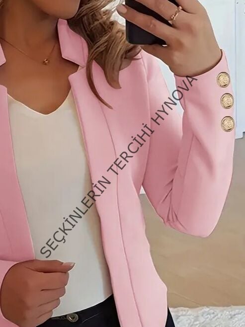 Kadın Uzun Kollu Kol Düğme Detay Ithal Krep Ceket