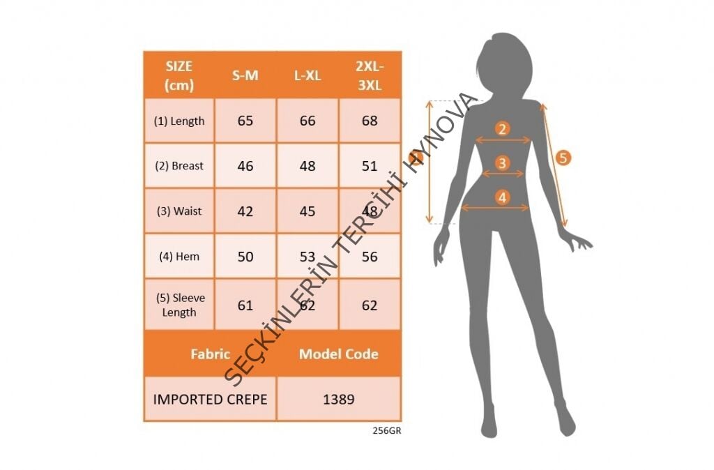 Modelin Ölçüleri: Boy:165, Kg:55, Göğüs:90, Bel:72, Kalça: 100