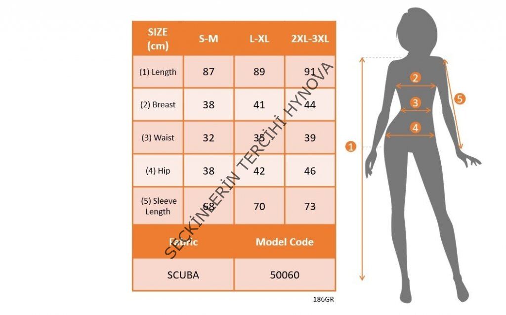 Modelin Ölçüleri: Boy:165, Kg:55, Göğüs:90, Bel:72, Kalça: 100