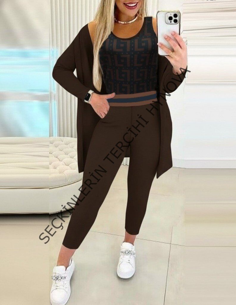 Kadın Uzun Kollu Krep üçlü Takım