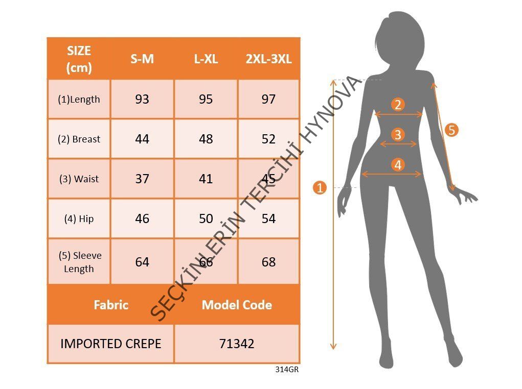Modelin Ölçüleri: Boy:165, Kg:55, Göğüs:90, Bel:72, Kalça: 100