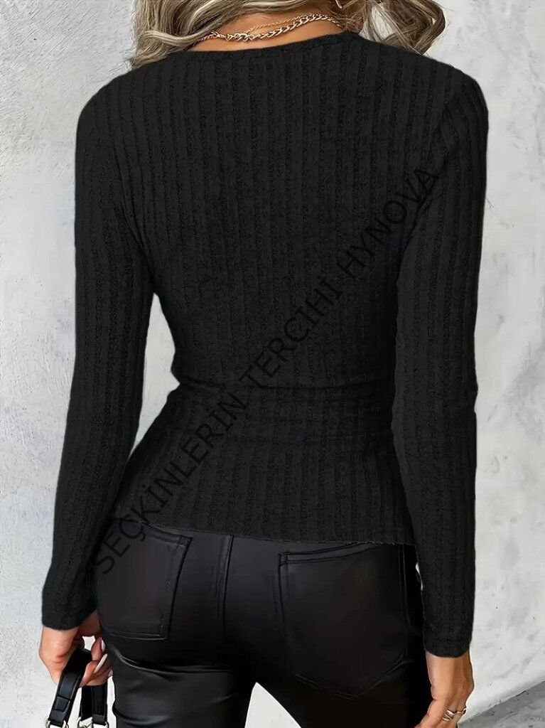 Kadın Uzun Kollu Kruvaze Yaka Yandan Düğme Detaylı şardonlu Kaşkorse Bluz