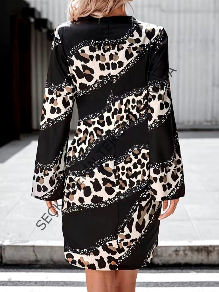 Kadın Uzun Kollu Kruvaze Yakalı Asimetrik Detaylı Mini Modal Elbise