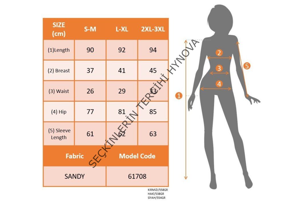 Modelin Ölçüleri: Boy:165, Kg:55, Göğüs:90, Bel:72, Kalça: 100