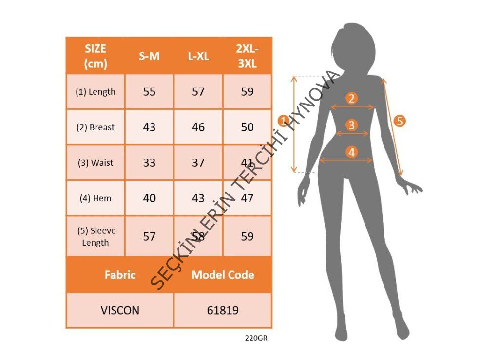 Modelin Ölçüleri: Boy:165, Kg:55, Göğüs:90, Bel:72, Kalça: 100