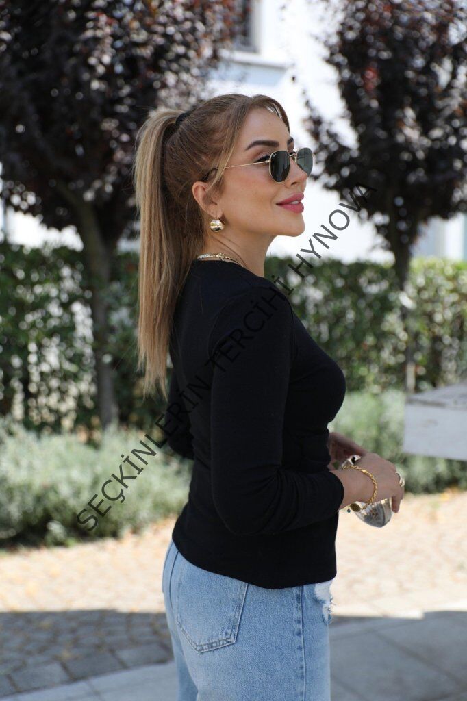 Kadın Uzun Kollu Kruvaze Yakalı Toka Detaylı Viskon Bluz