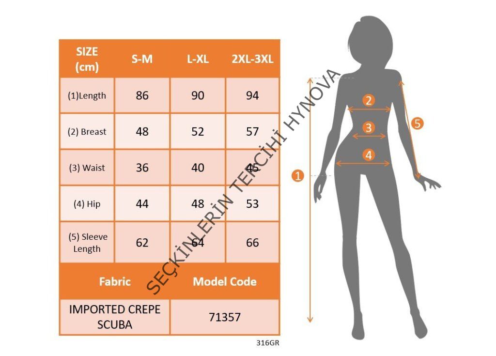 Modelin Ölçüleri: Boy:165, Kg:55, Göğüs:90, Bel:72, Kalça: 100