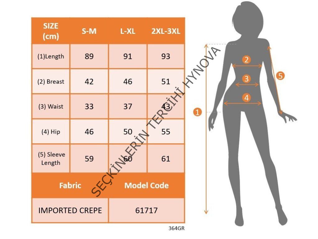 Modelin Ölçüleri: Boy:165, Kg:55, Göğüs:90, Bel:72, Kalça: 100