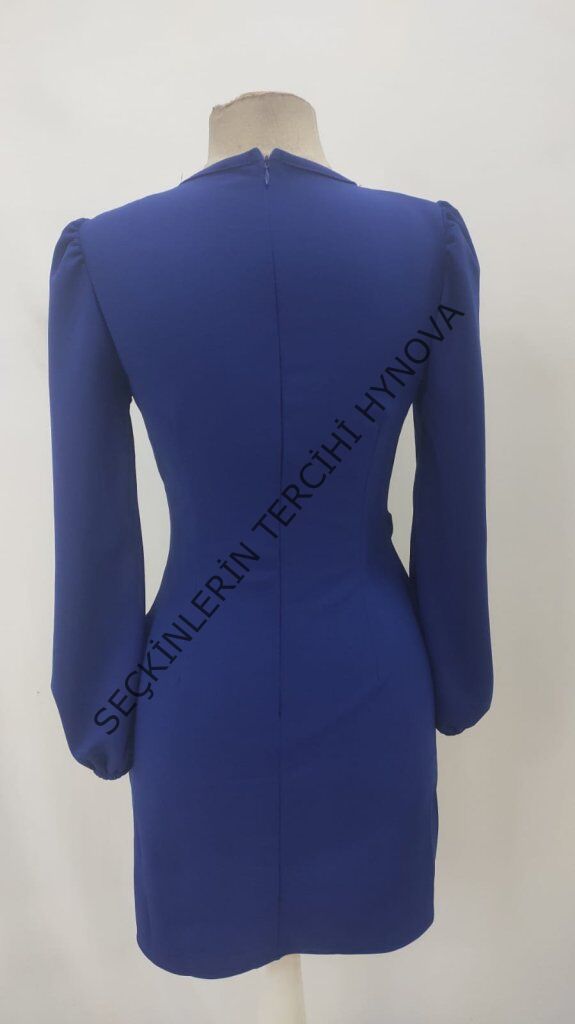 Kadın Uzun Kollu Kruvaze Yakalı Yanlardan Büzgü Detaylı Ithal Krep Kısa Elbise