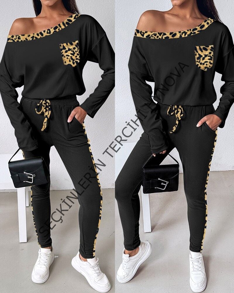 Kadın Uzun Kollu Leopar Detay Viskon Iki Iplik Ikili Takım