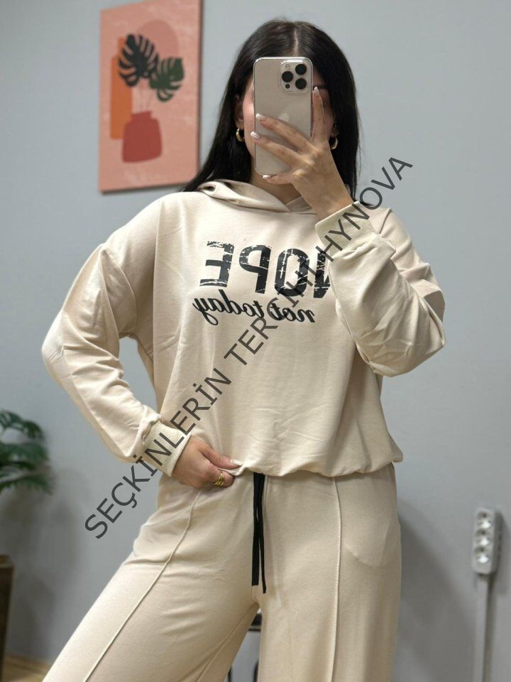 Kadın Uzun Kollu Nope Baskılı Beli Ribanalı Ikili Takım