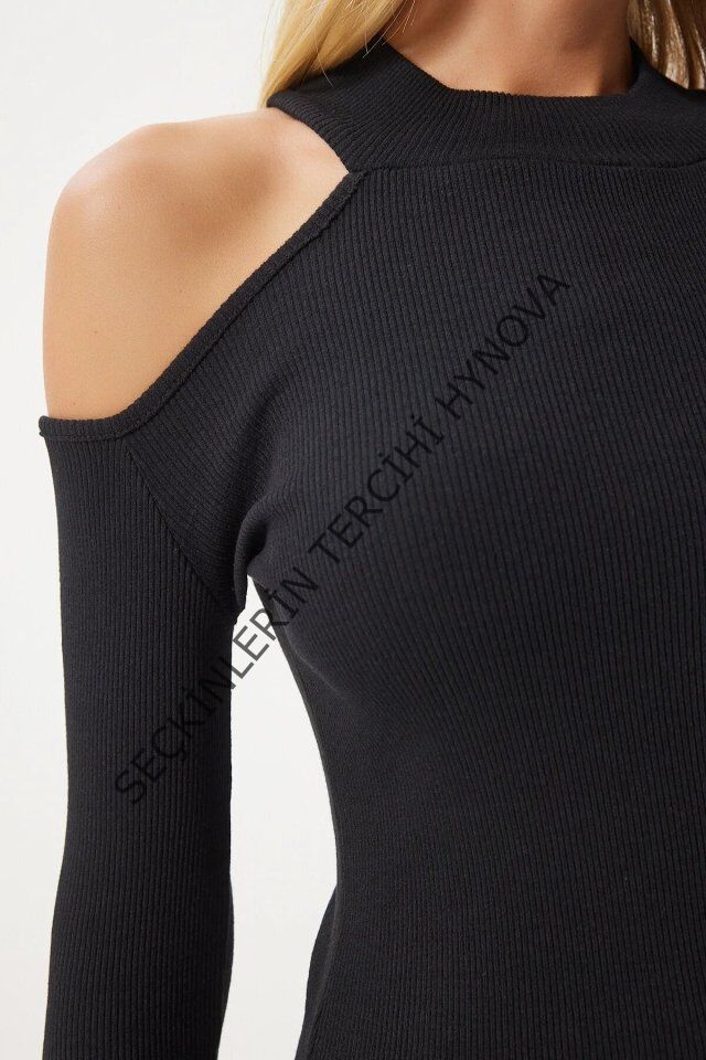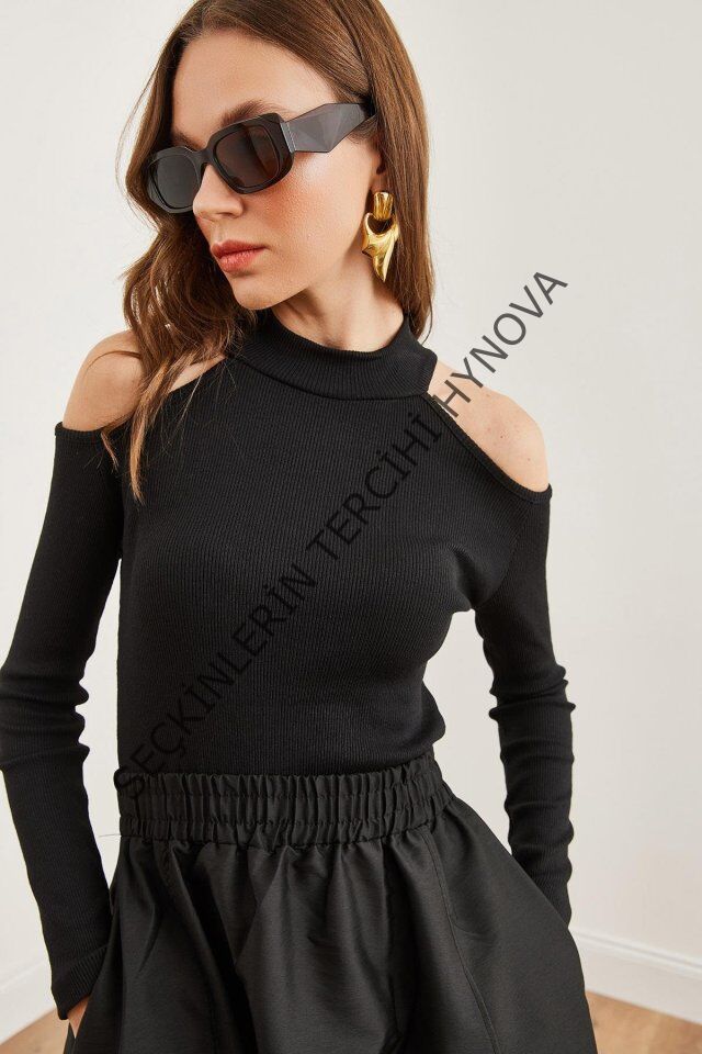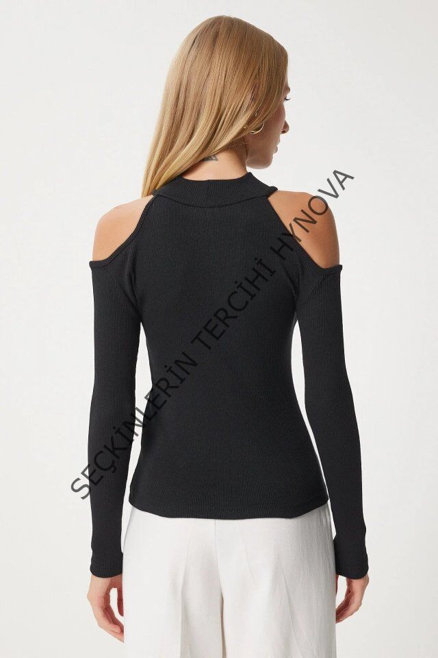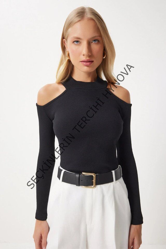 Kadın Uzun Kollu Omuz Dekolteli Kaşkorse Kumaş Bluz