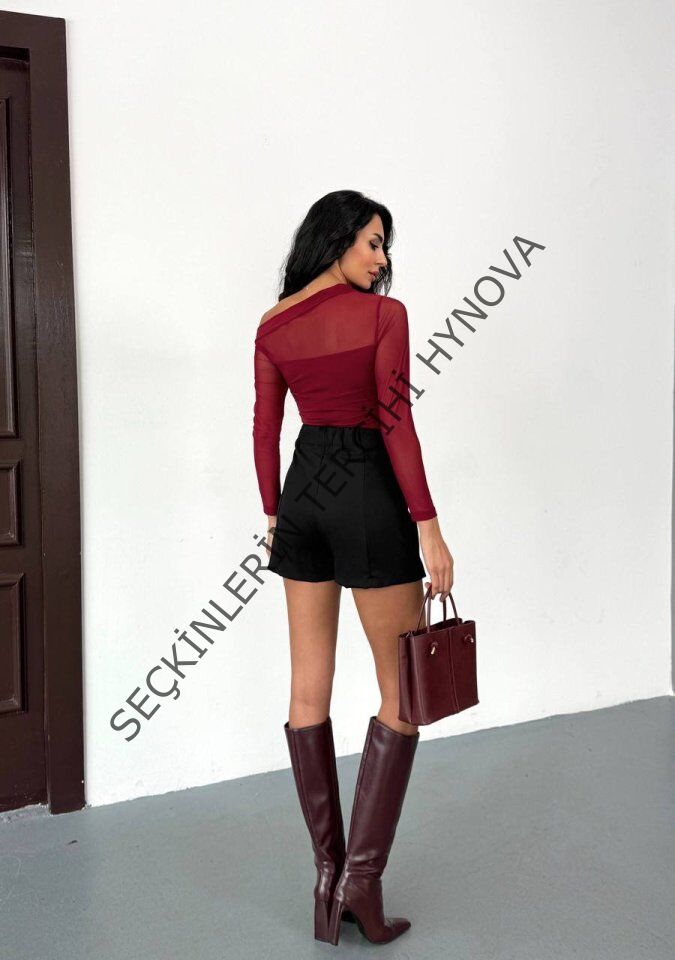 Kadın Uzun Kollu Omuz Dekoltesi Ve Transparan Tül Detay Bluz