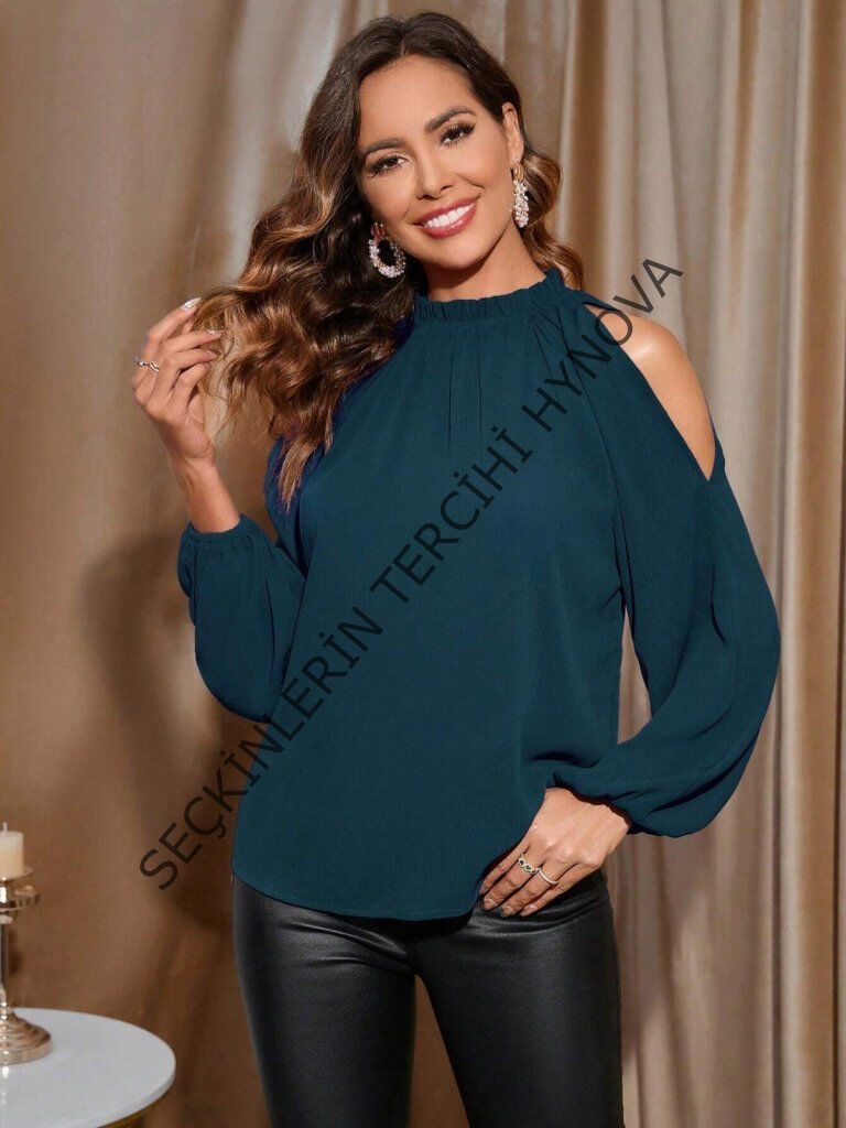 Kadın Uzun Kollu Omuzlardan Açık Sandy Bluz