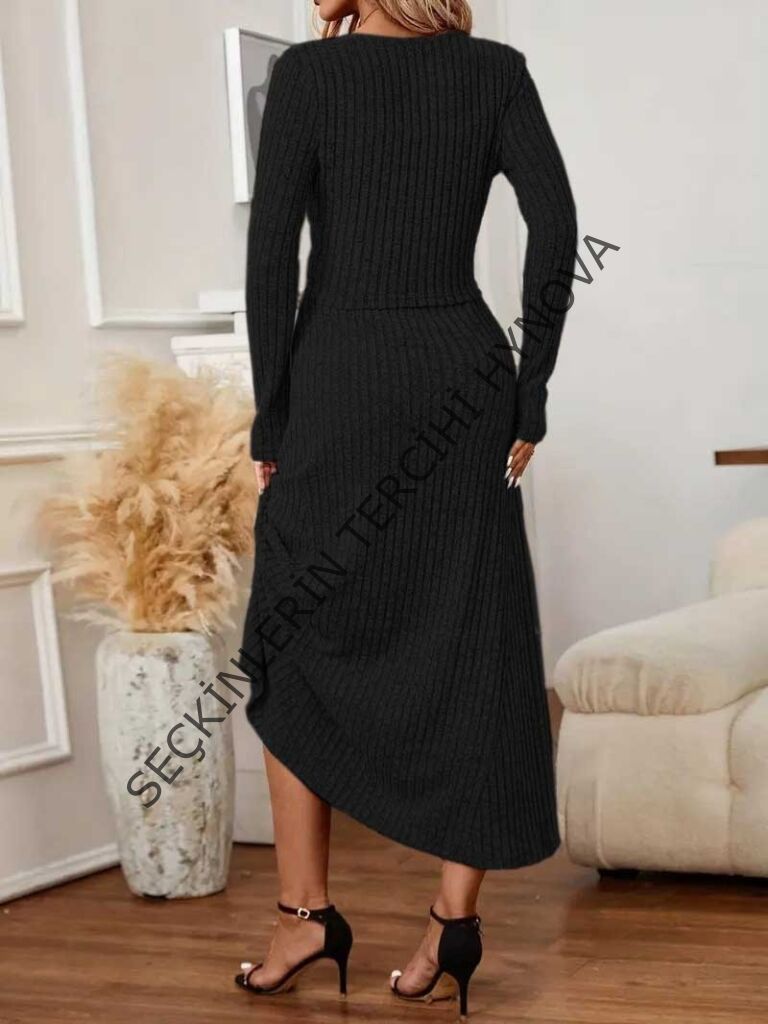 Kadın Uzun Kollu önden Düğmeli Bluz Ve Yüksek Bel A Kesim Uzun Etek şardonlu Kaşkorse Ikili Takım 175617