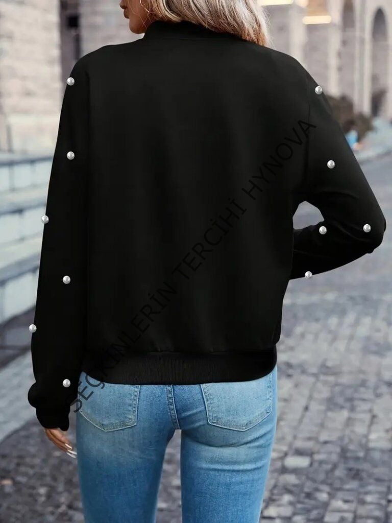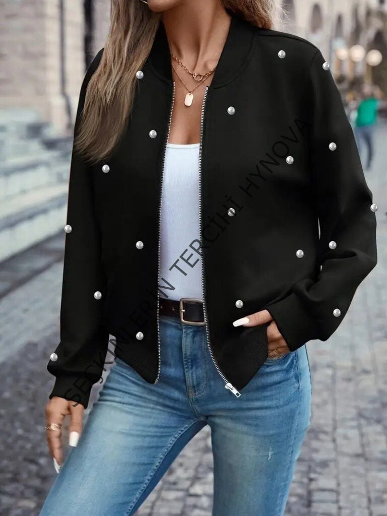 Kadın Uzun Kollu önden Fermuarlı Incili Kısa Modal Ceket