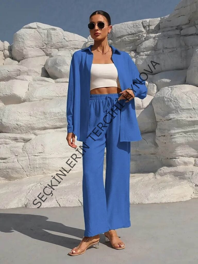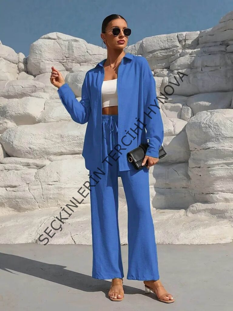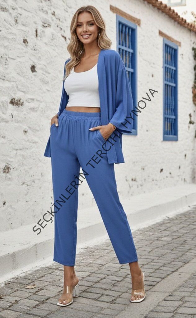 Kadın Uzun Kollu önü Açık Dokuma Ceket Ve Pantolon Ikili Takım