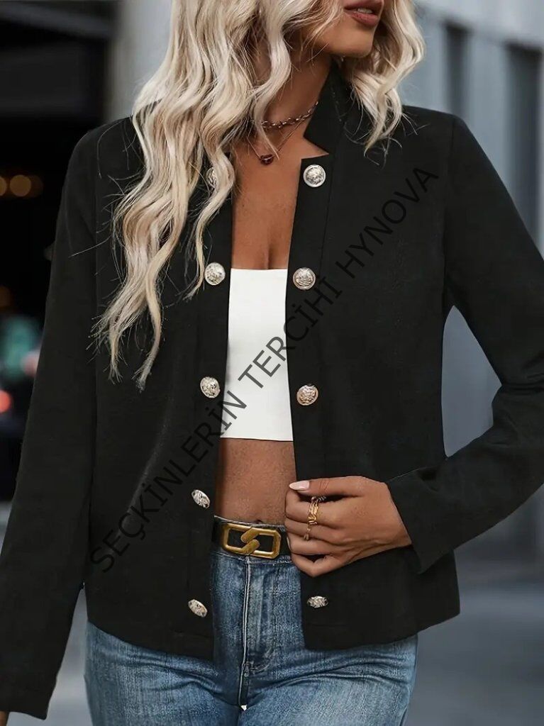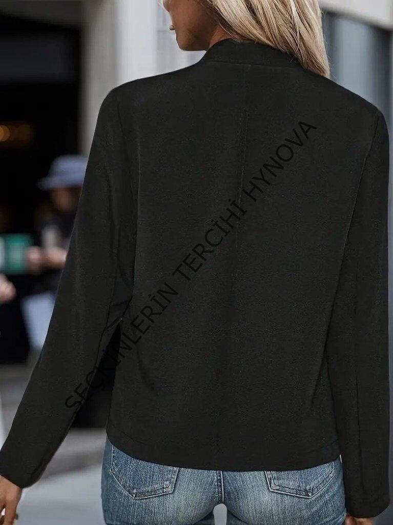 Kadın Uzun Kollu önü Açık Düğmeli Scuba Dalgıç Ceket