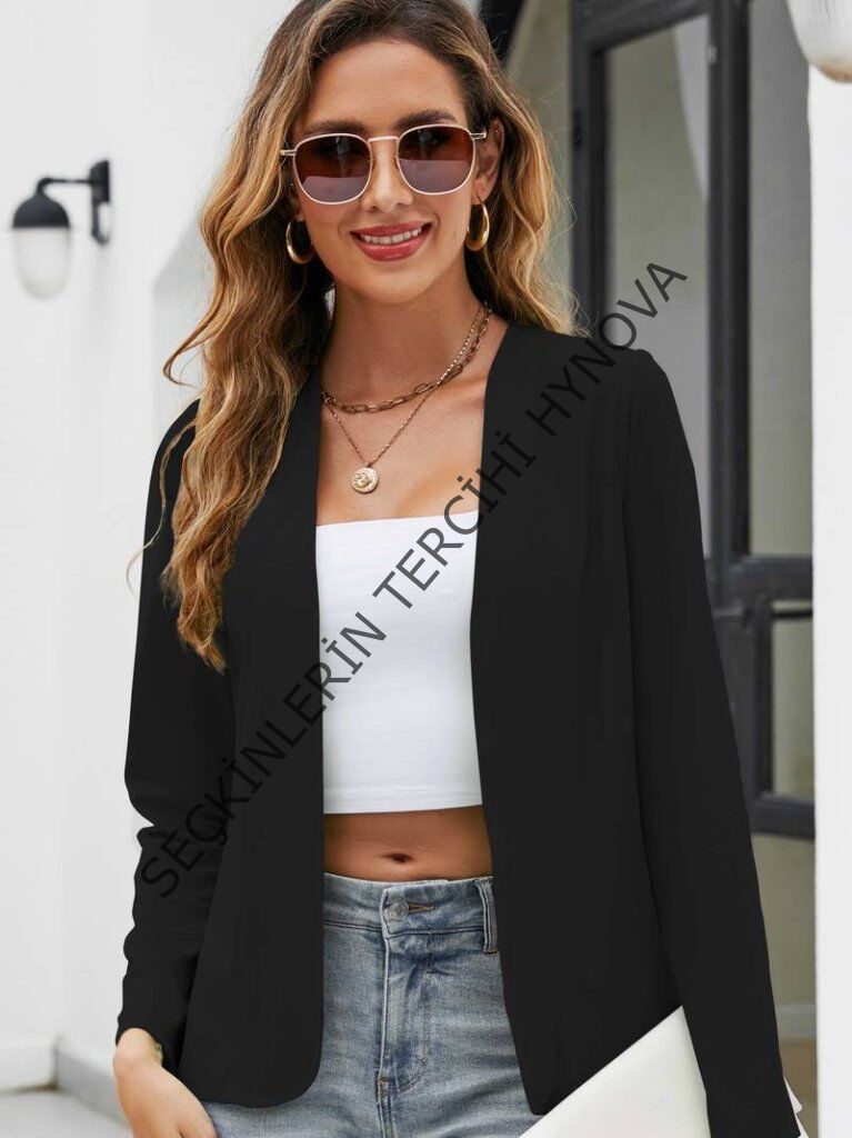 Kadın Uzun Kollu önü Açık Ithal Krep Blazer Ceket