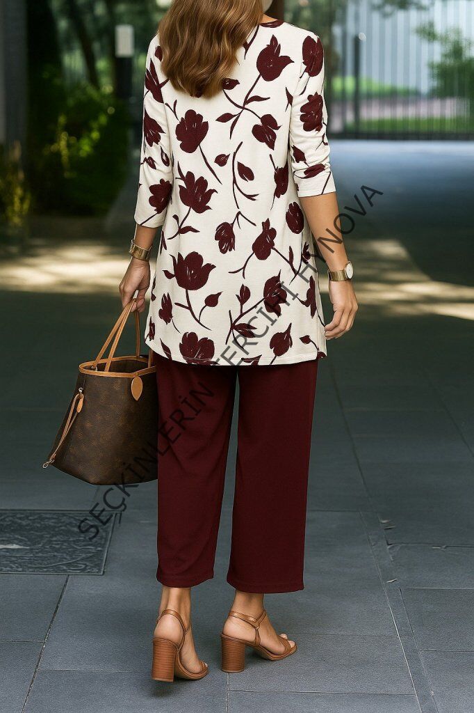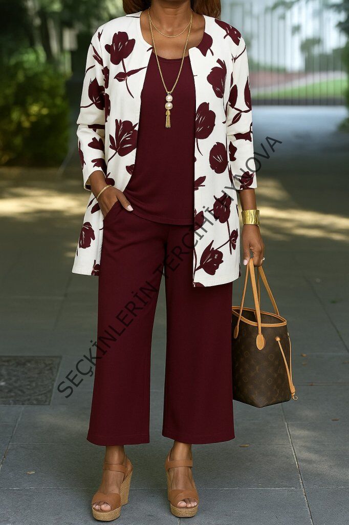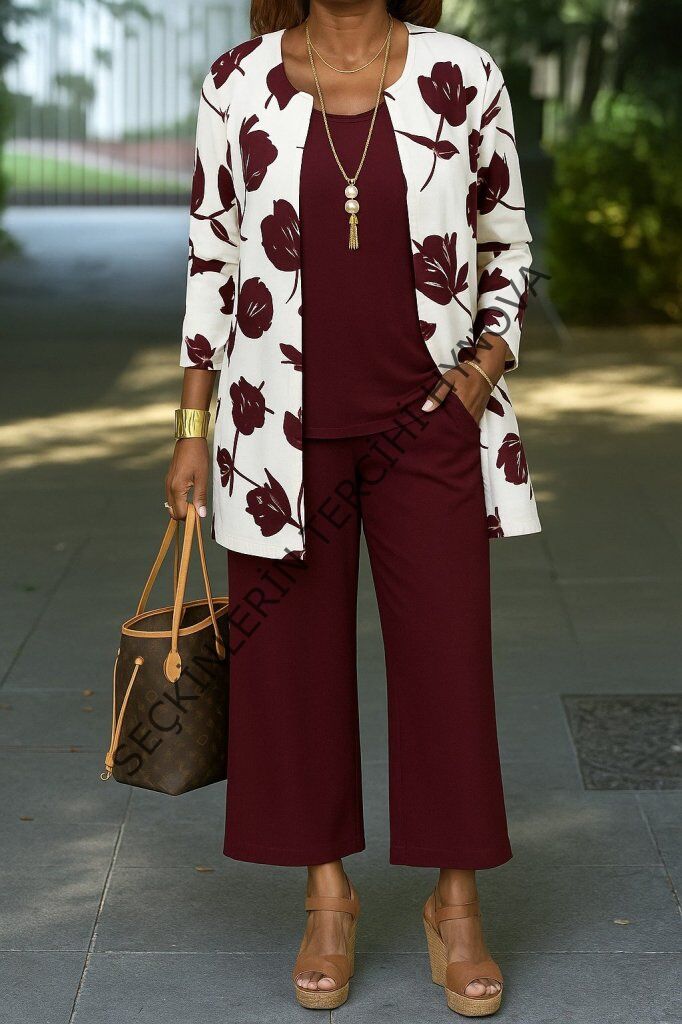 Kadın Uzun Kollu önü Açık Modal Ceket Kolsuz Viskon Iki Iplik Bluz Ve Pantolon üçlü Takım