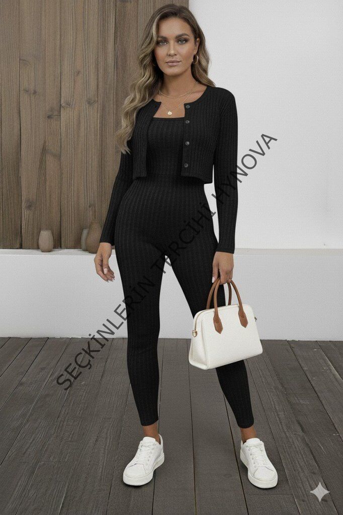 Kadın Uzun Kollu şardonlu Kaşkorse Straplez Ile Kısa önden Düğmeli Ceket Ikili Takım