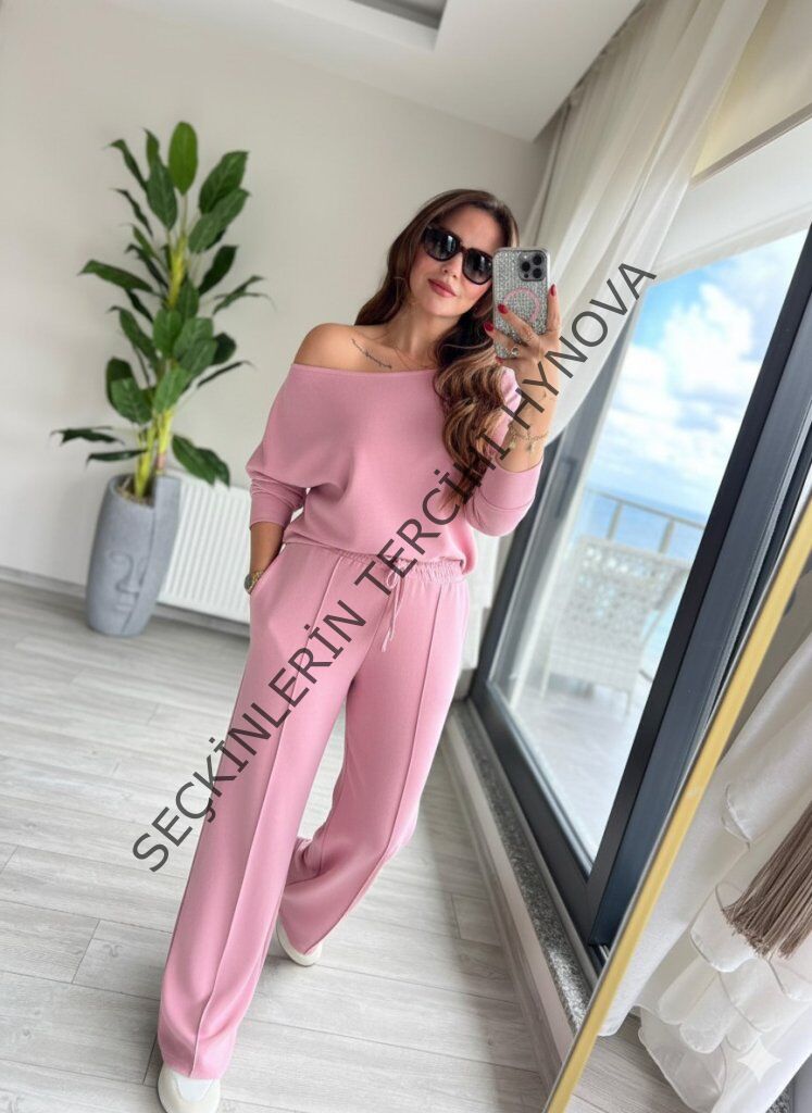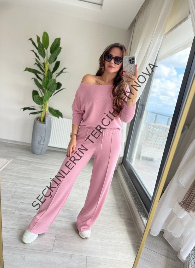 Kadın Uzun Kollu Tek Omuzdan Açık Dalgıç Bluz Ve Pantolon Ikili Takım