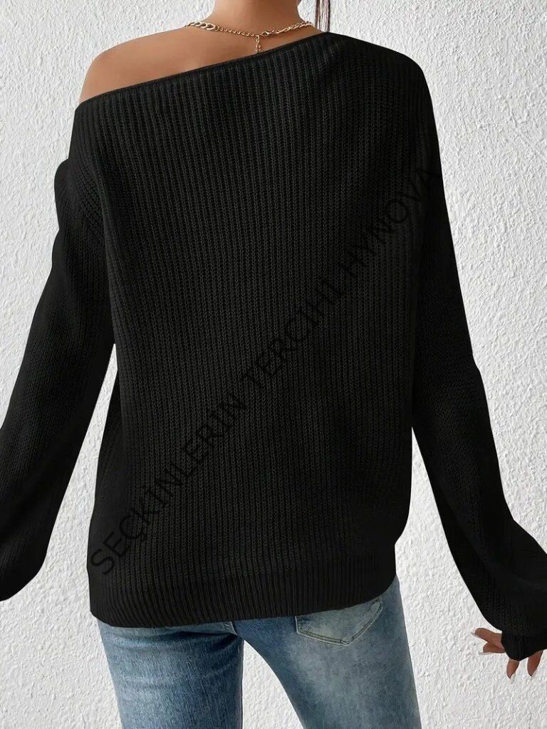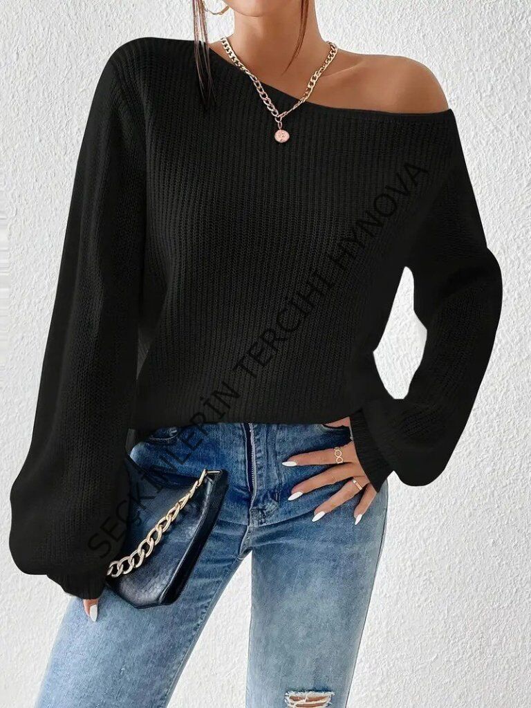 Kadın Uzun Kollu Tek Omuzu Açık Detaylı Triko Bluz 178848
