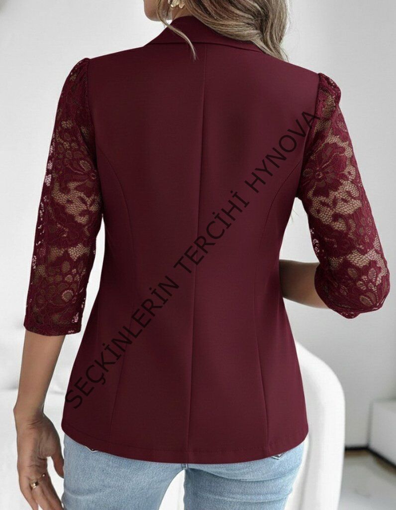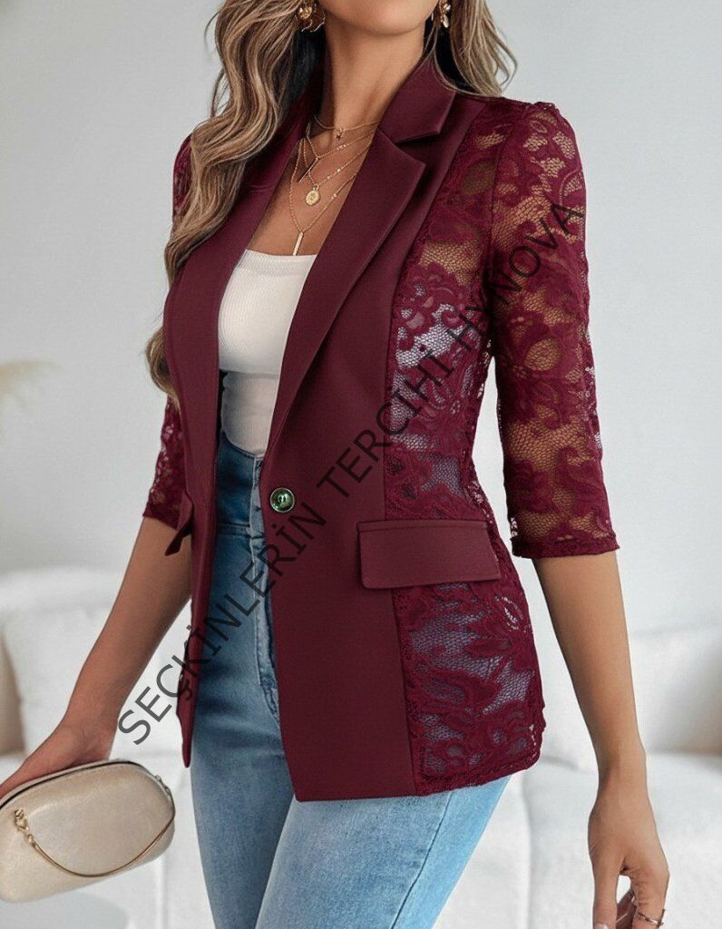 Kadın Uzun Kollu Truvakar Kol önden Düğmeli Cepli Dantelli Atlas Ceket