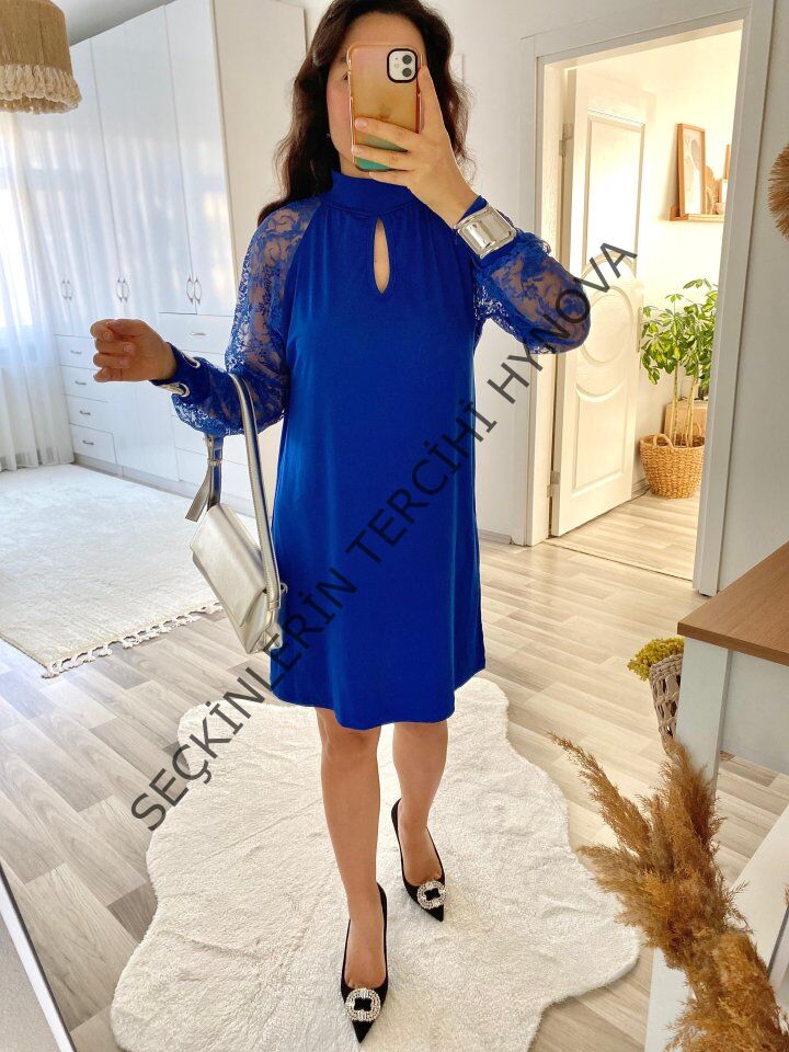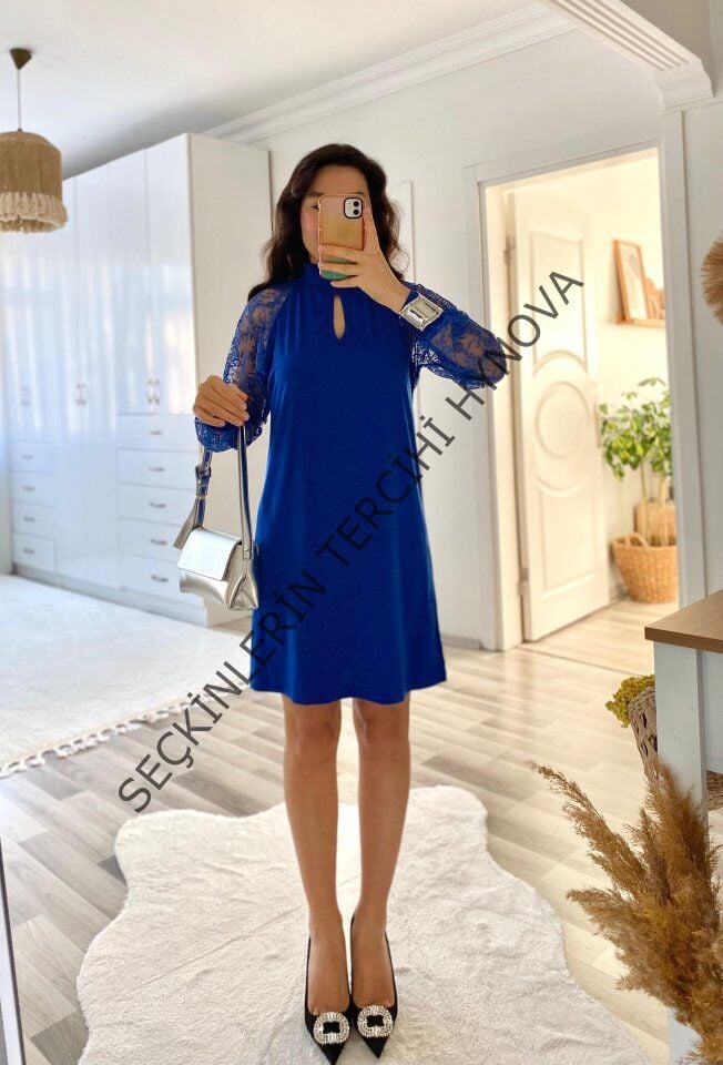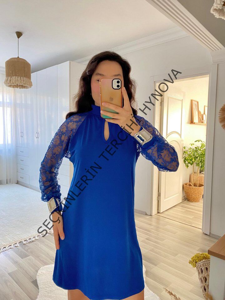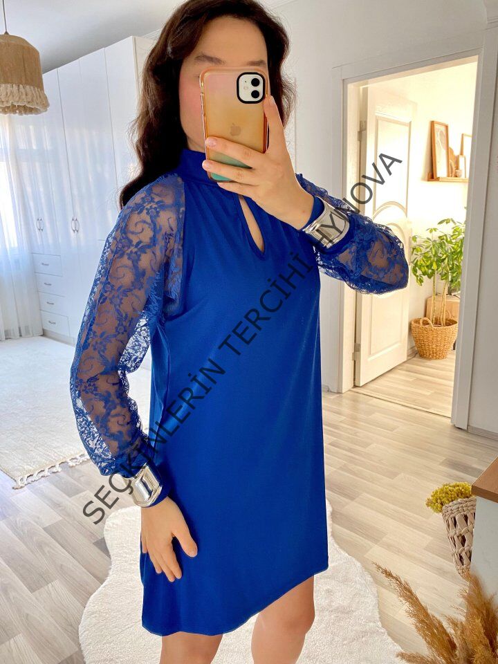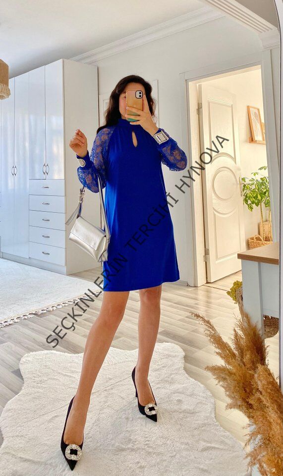 Kadın Uzun Kollu Tül Detay Sandy Mini Boy Elbise