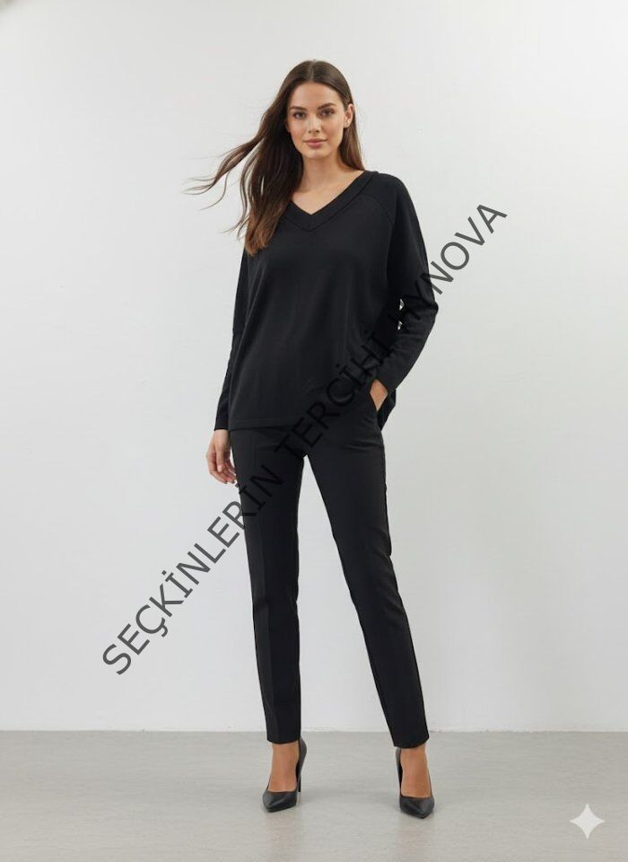 Kadın Uzun Kollu V Yaka Bluz