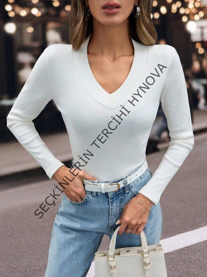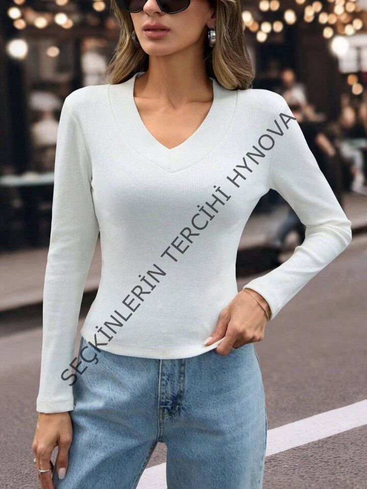 Kadın Uzun Kollu V Yaka Kaşkorse Kumaş Bluz